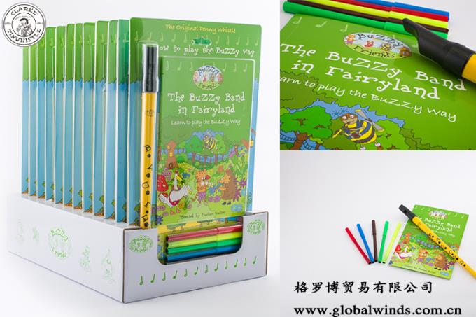 The BuZZy Band in Fairyland’ book is a magical introduction to the world of music. It comes with a traditional tinwhistle made by the famous Clarke company – who have been making tinwhistles in Kent for 175 years; and also a set of colouring pens which will be useful for personalising the book.
